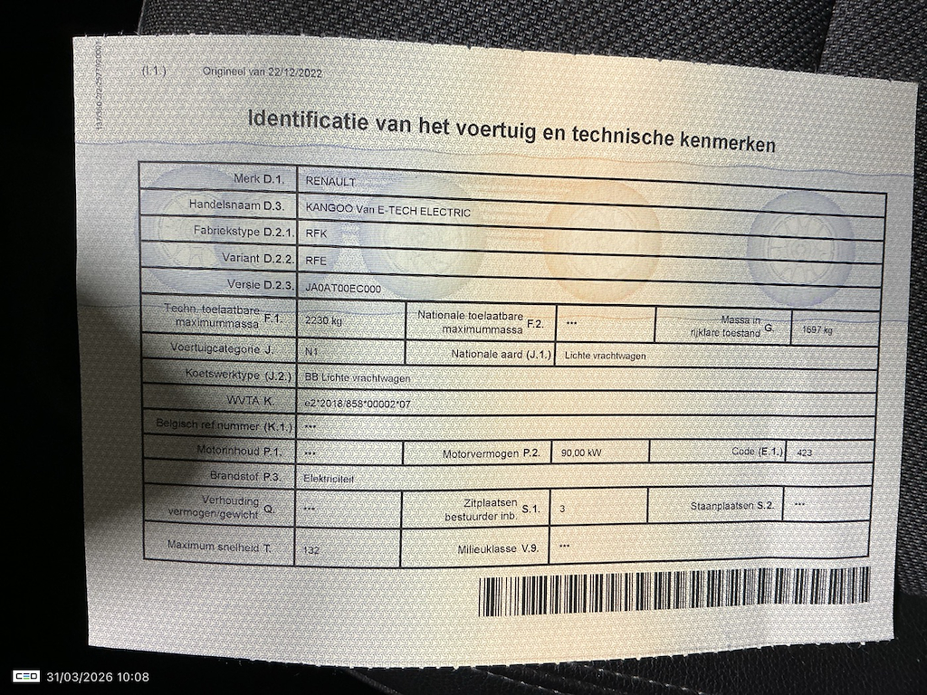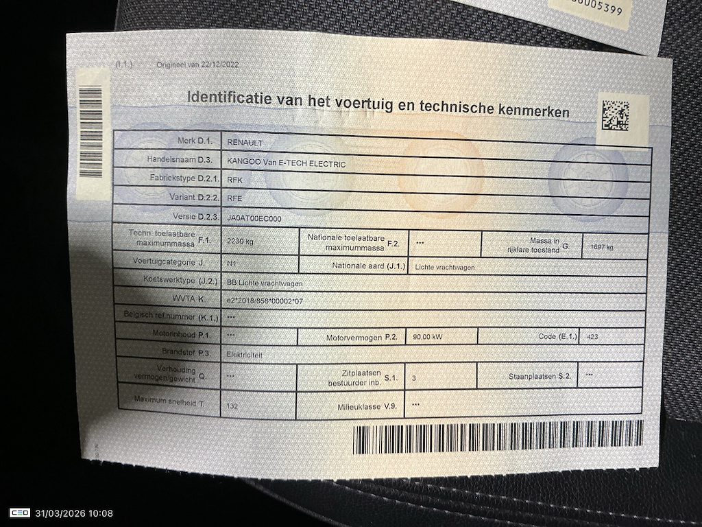 RENAULT KANGOO BEV 44KWH NOS ADVANCE 22KW CHARGER
